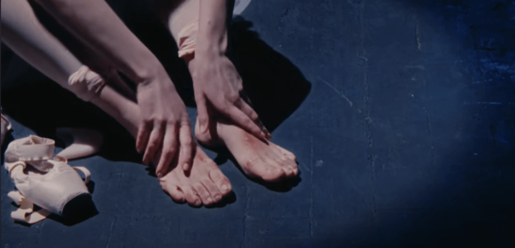 En el segundo acto vemos a una bailarina después de la función, vulnerable, con los pies heridos por la entrega al arte.