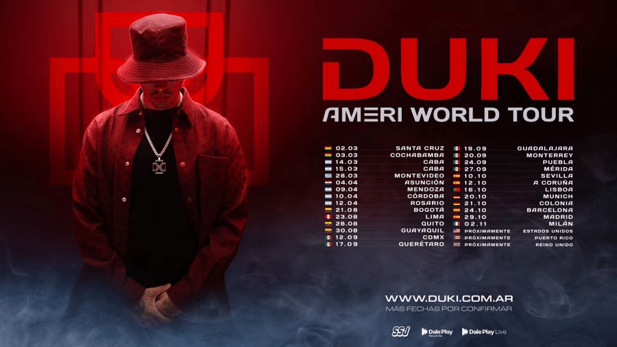 El próximo viernes 10 de Octubre el Estadio de la Cartuja se llenará gracias a Duki, uno de los máximos exponentes del trap y la música urbana en español. El artista argentino seguirá con Ameri World Tour en España. Tras su paso por latinoamérica, vuelve a la península después de casi dos meses, con sold outs y nuevas entradas disponibles en ticketmarket.