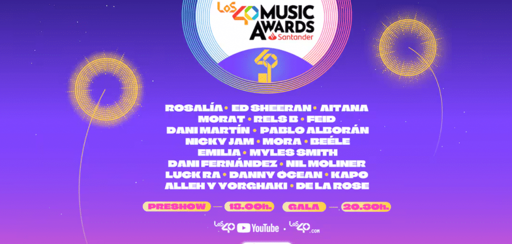 El pre-show será a las 18:00, y la gala, que será retransmitida en directo a través de los40.com y el canal de YouTube de LOS40, empezará a las 20:30.